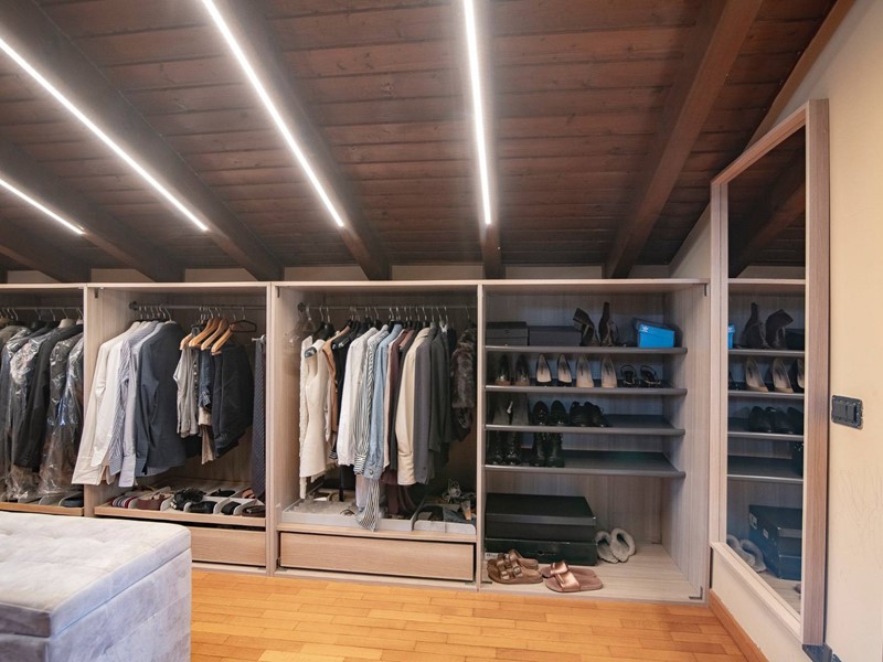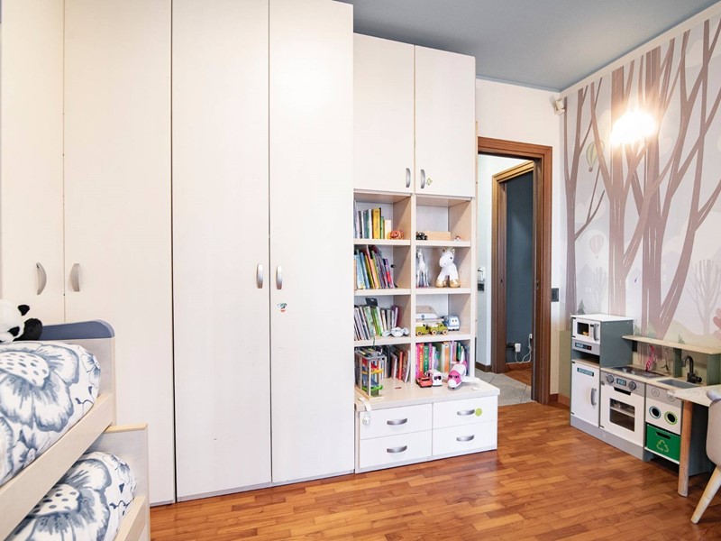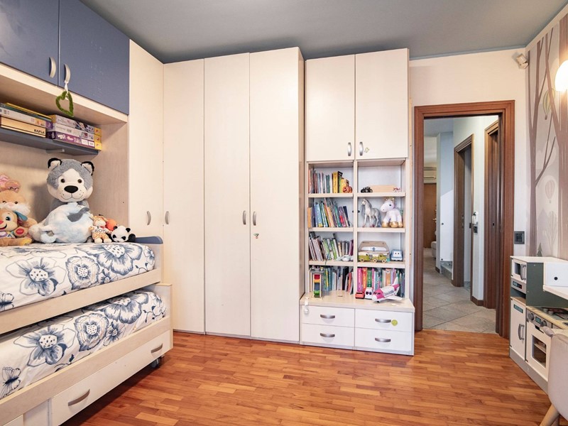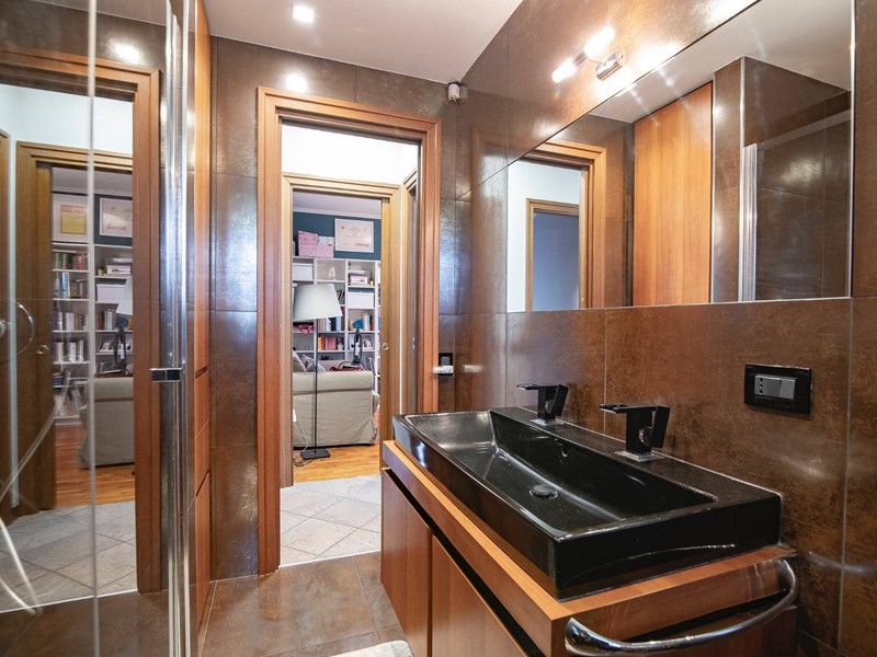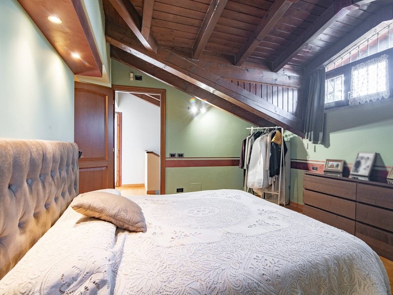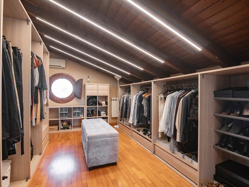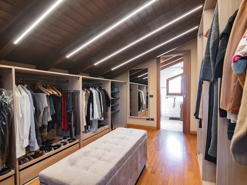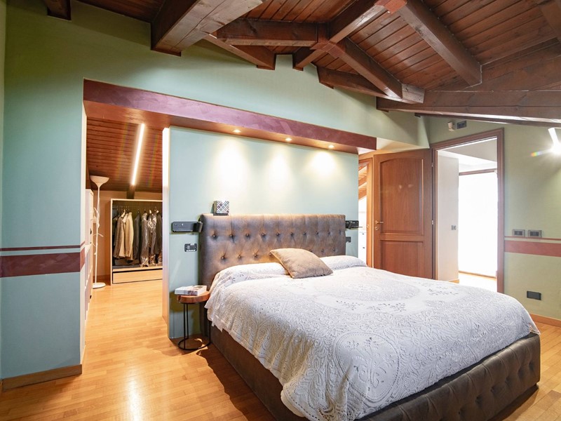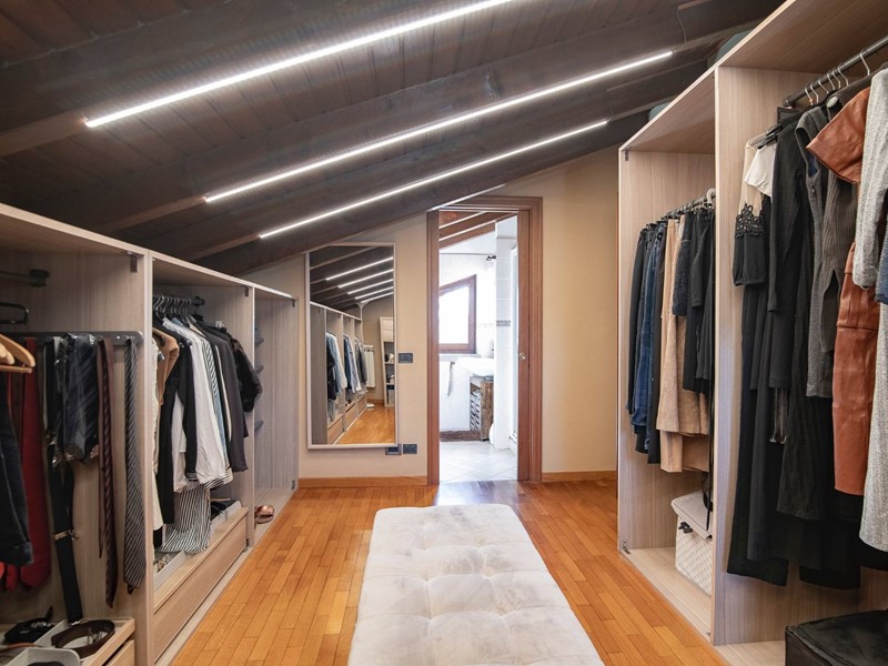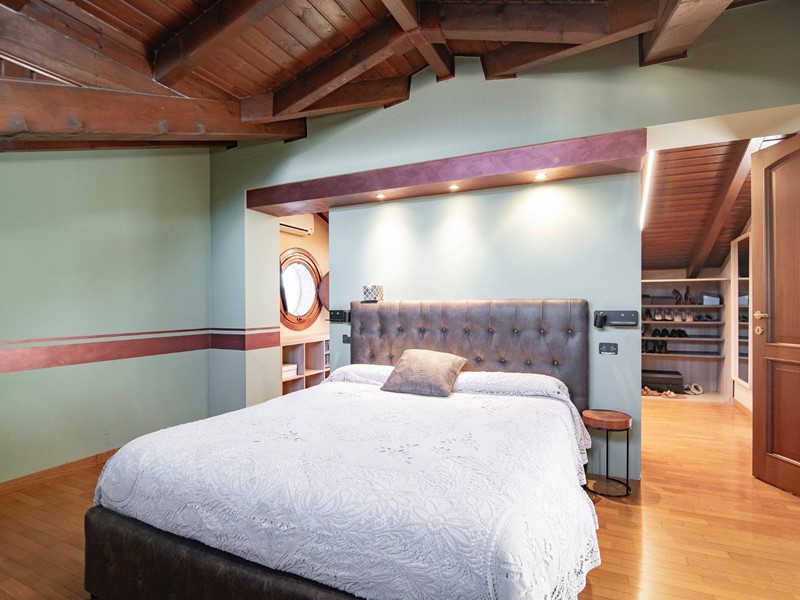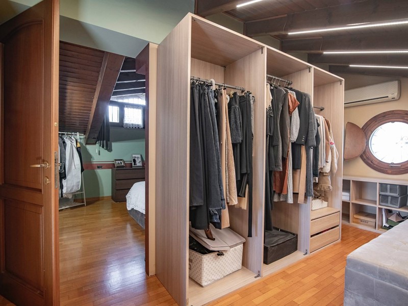 Salendo al piano superiore, scoprirai la camera matrimoniale dei tuoi sogni: ampia, riservata, con una spaziosa ed elegante cabina armadio, un bagno privato e un terrazzo intimo, dove goderti il sole o il silenzio.