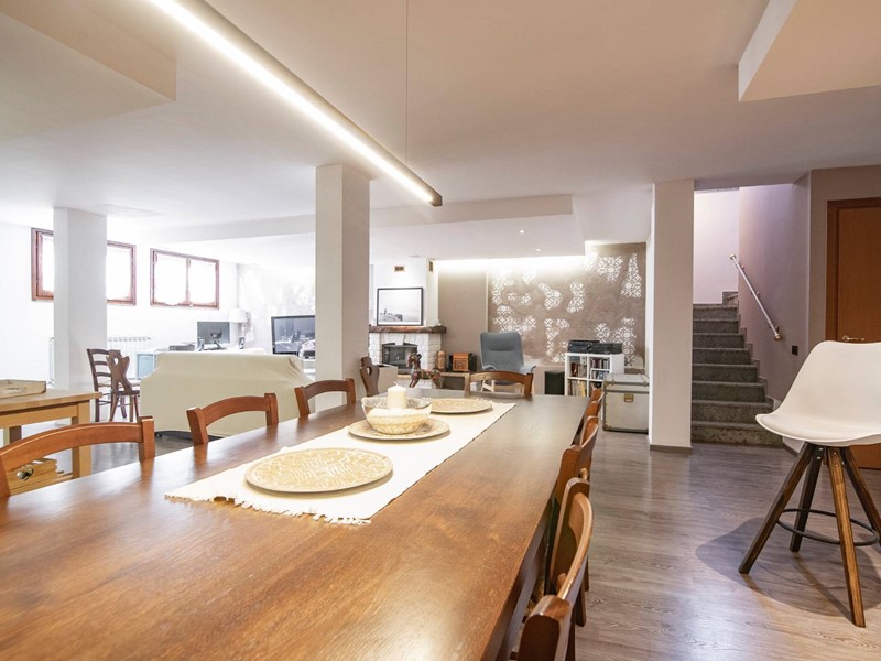 Il cuore pulsante della casa, però, è il piano seminterrato: una grande taverna calda e accogliente con pavimenti in parquet, un camino ventilato e una cucina attrezzata, perfetta per ospitare amici, festeggiare o semplicemente stare insieme.