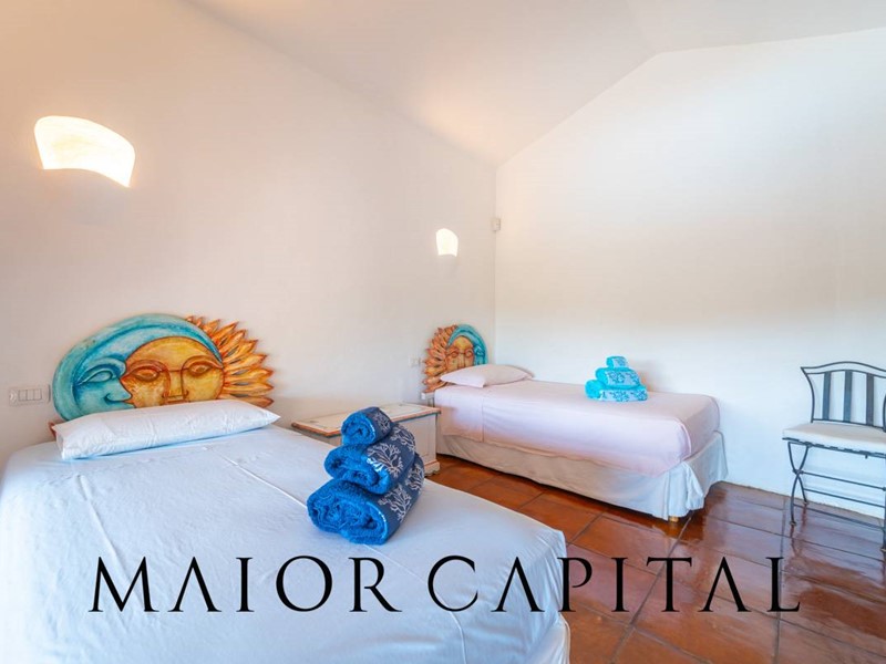 Articolata su due livelli, la villa riflette lo stile smeraldino, con ambienti eleganti e in armonia con la natura. Il luminoso soggiorno, con travi a vista e pavimenti in cotto, si apre su unampia veranda coperta che regala scorci panoramici sul verde circostante. La cucina, separata e completamente accessoriata, richiama la tradizione sarda. La zona notte comprende una camera padronale con bagno en suite, oltre a due ulteriori camere da letto e un bagno condiviso. Al piano seminterrato, accessibile dallesterno, si trovano due ulteriori camere matrimoniali e un bagno, ideali per ospiti o personale.