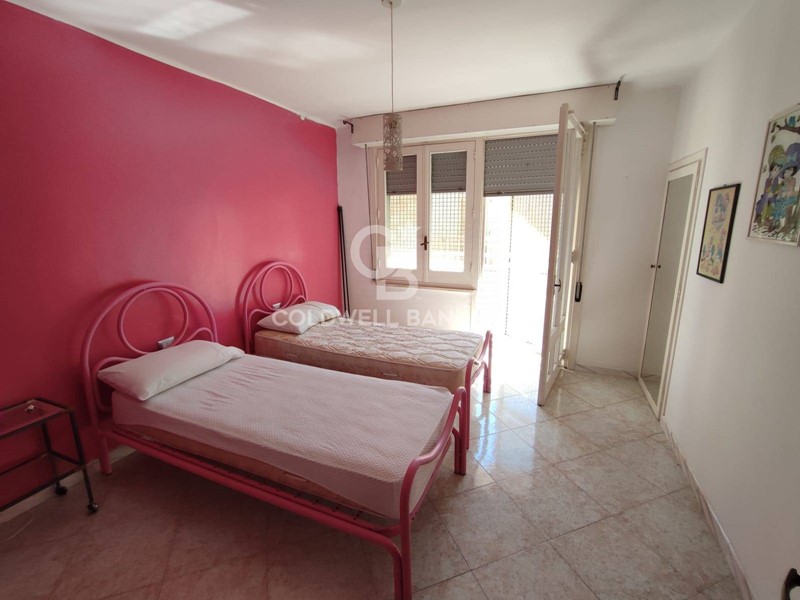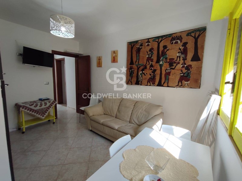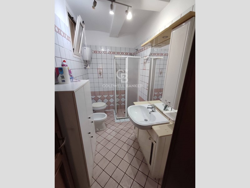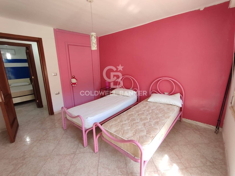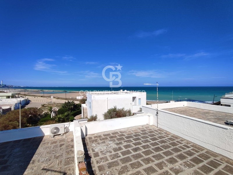 L'immobile è composto da: una veranda coperta dove vi è un primo ingresso con accesso a cucina/soggiorno, una camera da letto, un bagno ed una lavanderia; Dal secondo ingresso della veranda si accede, tramite una comoda scala, al piano primo composto da: soggiorno/pranzo, un bagno, due camere da letto di cui una con balcone, oltre all' area solare di proprietà vista mare.
