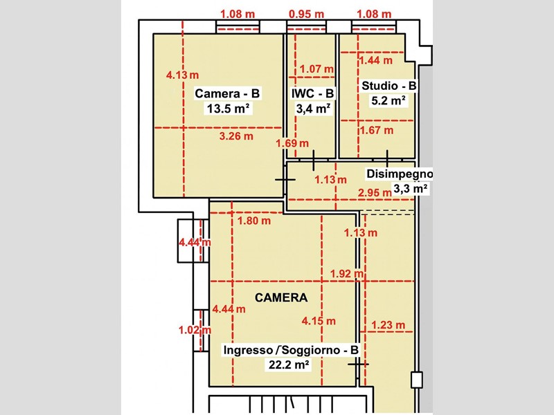 Lappartamento si trova al primo piano di uno stabile composto da soli quattro appartamenti, senza ascensore.