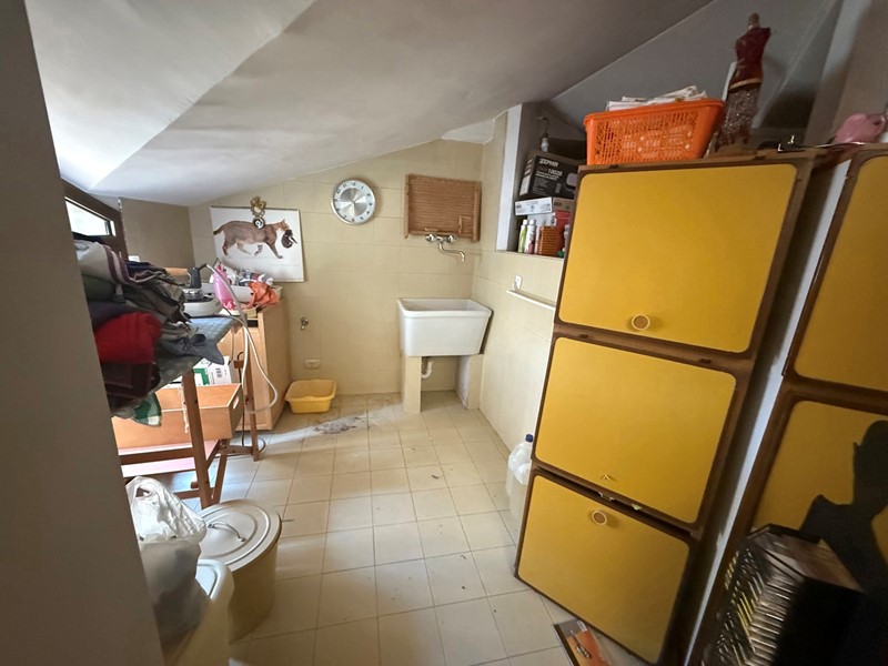 Il piano seminterrato, con ingresso indipendente, offre un'ampia cucina con tinello e camino, ideale per cene in famiglia, oltre a un bagno e una veranda che si affaccia su un giardino privato di circa 200 mq. Al primo piano, raggiungibile tramite una comoda scala in legno, si trovano due grandi camere, un bagno, una lavanderia e due terrazzini che regalano una vista panoramica.