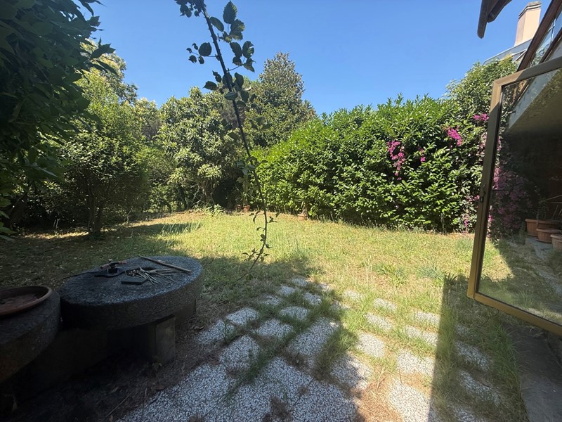 Roma nord, in zona Giustiniana, con posizione strategica, sia per i collegamenti stradali, sia per la vicinanza ai servizi, scuole, negozi e mezzi pubblici, in contesto esclusivo e residenziale, disponiamo di bellissima porzione di villa in quadrifamiliare di mq 230, dislocata su 2 livelli, composta da: al piano terra, con accesso da corte esclusiva, troviamo un ampio e luminoso salone con accesso ad un incantevole terrazza, parzialmente porticata, circondata dal verde e immersa nella tranquillità, ed un soppalco ad uso studio; al piano seminterrato, ma fuori terra su 2 lati e dotato anche di un secondo ingresso indipendente, troviamo un disimpegno, un ampia cucina abitabile con camino, 3 camere, 3 bagni ed un portico che affaccia sul giardino di pertinenza di circa 150 mq.