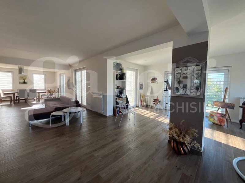 La proprietà, caratterizzata da un design moderno e comfortevole, si presenta con una superficie di 240 mq distribuiti su 2 livelli, più piano seminterrato di 110 mq.  Il piano rialzato è composto da ingresso su ampia zona living, soluzione resa ancor più particolare per le vetrate luminose e TERRAZZO che da affaccio sulla maestosa PISCINA INTERRATA, con zona pranzo open space e ripostiglio. La zona notte è composta da 3 camere da letto, di cui 1 con bagno in camera e bagno del piano.