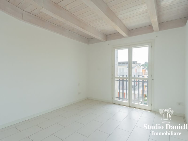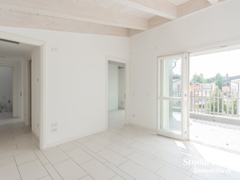 In palazzina di recente costruzione, trilocale con splendide TRAVI A VISTA in legno sbiancato, sito all'ULTIMO PIANO con TERRAZZO. La soluzione è composta da zona giorno con accesso al terrazzo collegato alla CUCINA semi ABITABILE, disimpegno, camera matrimoniale con vasca e cabina armadio, seconda camera di ampie dimensioni, bagno padronale e lavanderia. \nLa soluzione si presenta in buone condizioni con serramenti in legno con doppio vetro, riscaldamento a pavimento centralizzato a gestione autonoma. Cantina inclusa nel prezzo e possibilità di acquisto BOX di 25mq (prezzo a parte and euro; 18.000,00) o POSTO AUTO COPERTO ( and euro; 9.000,00).\n\nLIBERO SUBITO.\n\nPur ubicato a due passi dal centro, comodo con tutti i servizi (stazione ferroviaria inclusa) raggiungibili a piedi, la zona è tranquilla ed in particolar modo la zona notte gode di un affaccio riservato.\n\nLe spese condominiali ammontano a ca 110 and euro; mensili oltre spese di riscaldamento ed acqua.\n\nContattaci al 320.3045331 (anche via sms o whatsapp) per ulteriori info o per un appuntamento!!! Tutte le informazioni qui fornite sono da ritenersi puramente indicative e non costituiscono in alcun modo elemento contrattuale. I dati relativi alle superfici sono approssimative , non hanno valore contrattuale e non sono in alcun modo vincolanti nella trattativa di vendita. I beni vengono venduti o affittati a corpo e non a misura. - Maggiori Dettagli: Porta blindata, Persiane, Doppi vetri, Videocitofono , Serramenti in alluminio , Riscaldamento a pavimento