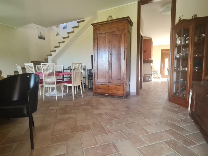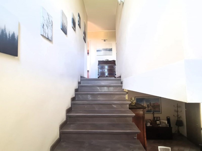 - Piano terra: ingresso che immette in un ampio soggiorno luminoso, studio con accesso al loggiato, sala pranzo con caminetto, secondo soggiorno separato, cucina abitabile con accesso all'esterno, bagno e ripostiglio