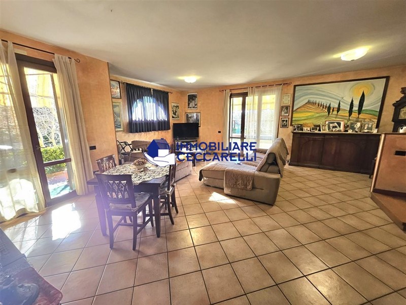La proprietà si sviluppa su più livelli per una superficie complessiva di circa 200 mq e dispone di ingresso indipendente. Al piano terra si apre un'accogliente zona giorno composta da un grande soggiorno-salone con affaccio diretto sul giardino, dove un’elegante area esterna è perfetta per pranzi e cene all’aperto. Completa il piano una spaziosa cucina abitabile e un bagno di servizio.