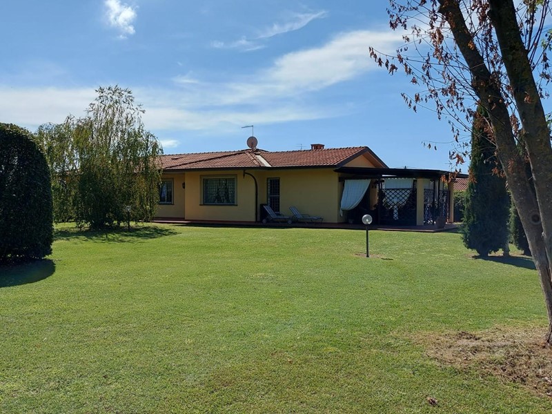 Rif. V 50 Tra la città e il mare proponiamo villa di prestigio, di grande metratura e sviluppata interamente su piano terra e taverna, circondata da un giardino in parte piantumato di 4800 metri. L'immobile è di recente costruzione e si trova in perfette condizioni sia esternamente che internamente. La villa, pur essendo un'unica unità immobiliare si adatta per le caratteristiche costruttive ad essere abitata anche da 2 nuclei familiari in totale autonomia. La villa si sviluppa per circa 190 metri su unico piano con cucina, sala, dispensa tre camere studio e 2 bagni da un lato e cucina soggiorno camera e bagno dall'altro. La taverna, molto luminosa e rifinita ha anch'essa cucina sale e bagni ed è accessibile sia dall'interno che dall'esterno. Splendida veranda per cene all'esterno. Le rifiniture sono di alta qualità sia per quanto riguarda i pavimenti, i bagni, gli infissi