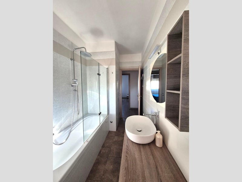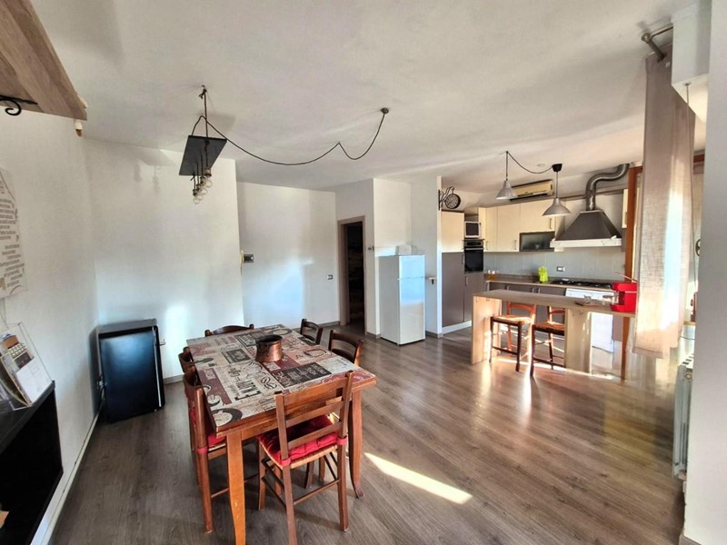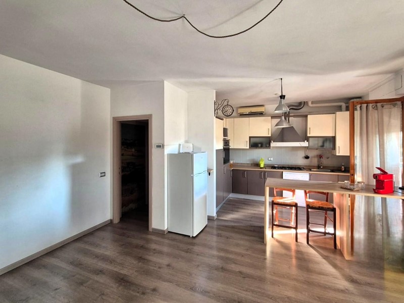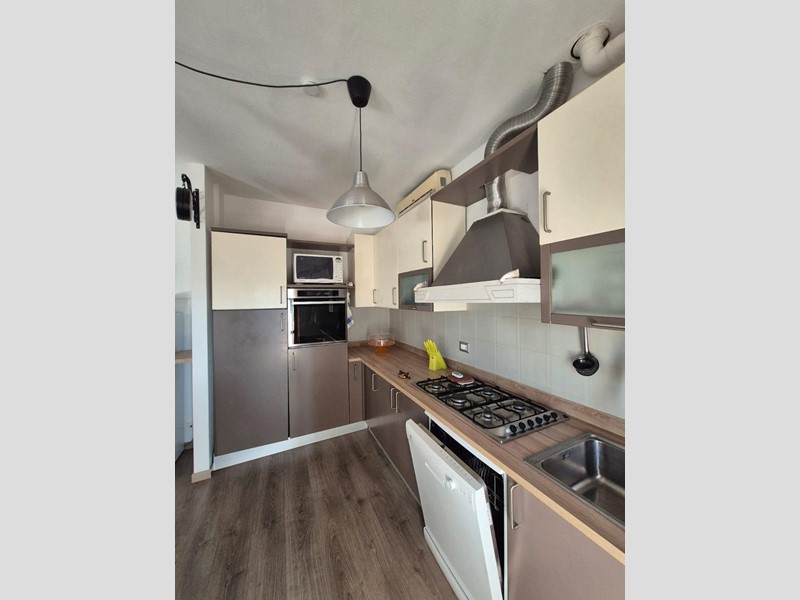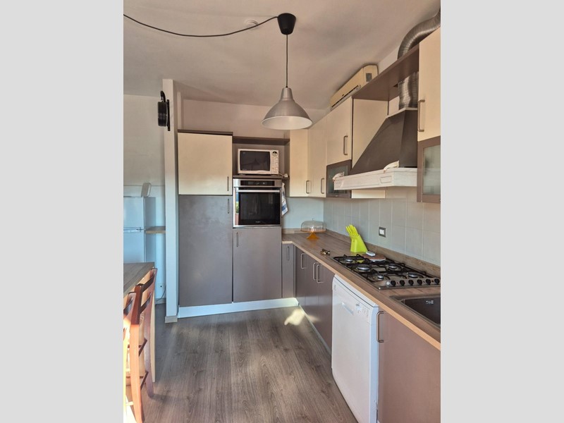 Entrando si trova un bellissimo ambiente open-space con il soggiorno e cucina a vista, che si affacciano su un comodo terrazzo, dove sono presenti gli attacchi per piccolo locale lavanderia.