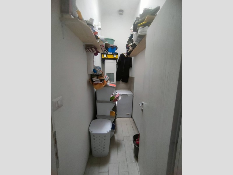 Visto che il soffitto è molto alto, nel corridoio nella lavanderia e nel bagno, sono stati creati dei soppalchi chiusi dove stipare piumoni, cambi stagione ecc.