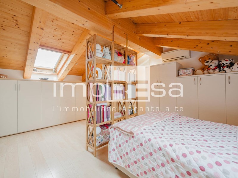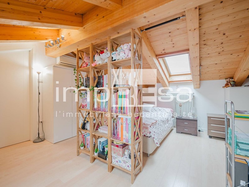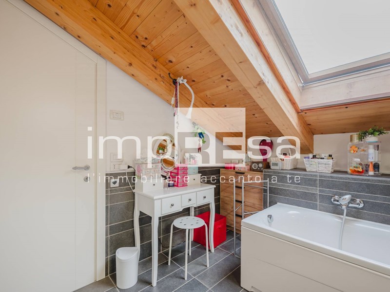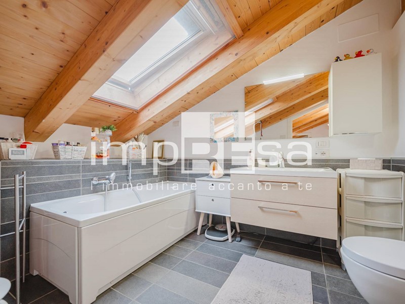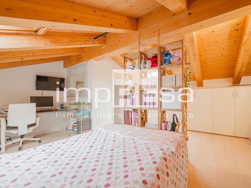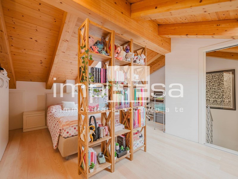 al piano mansardato (regolarmente censito) e collegato da scala interna, ampia zona opensapace multiuso con bagno con vasca, entrambi con velux con tende oscuranti.