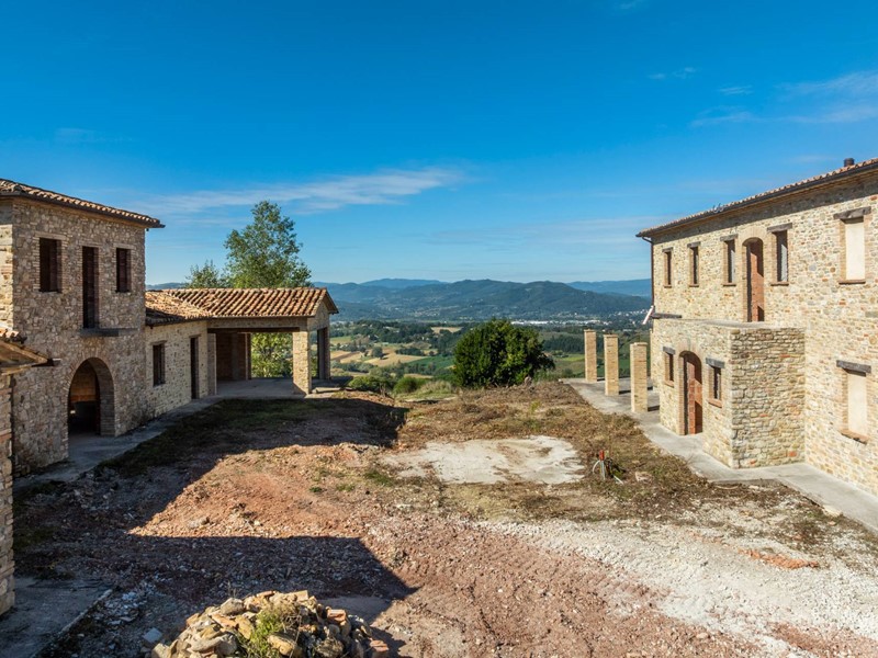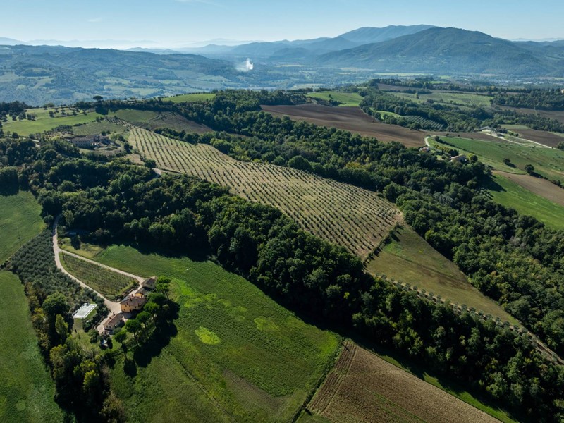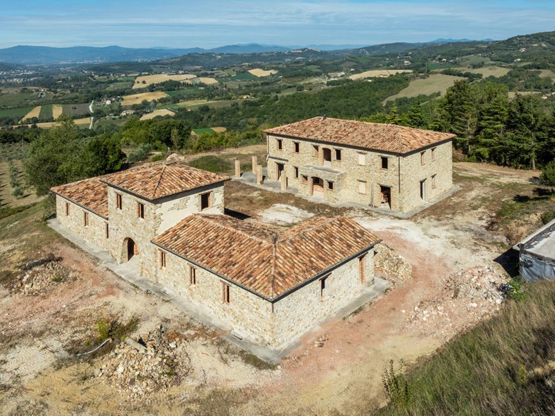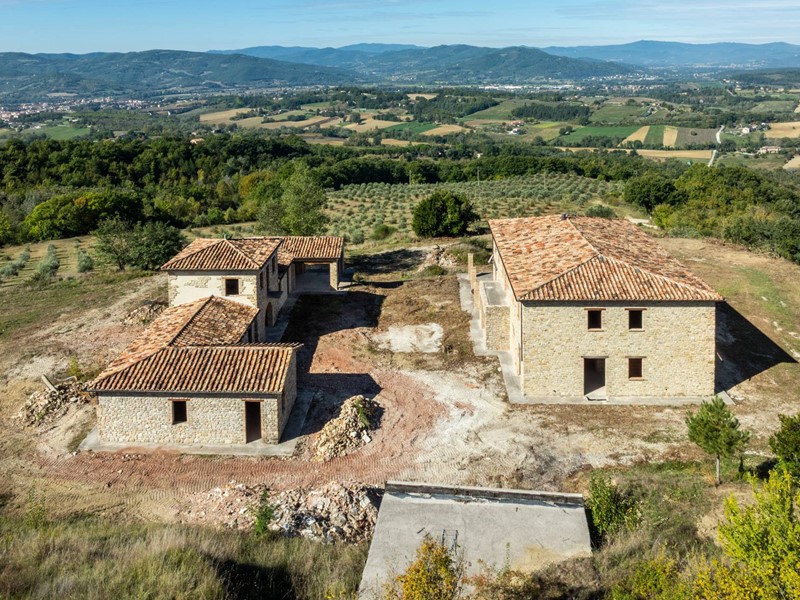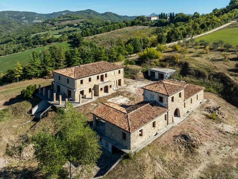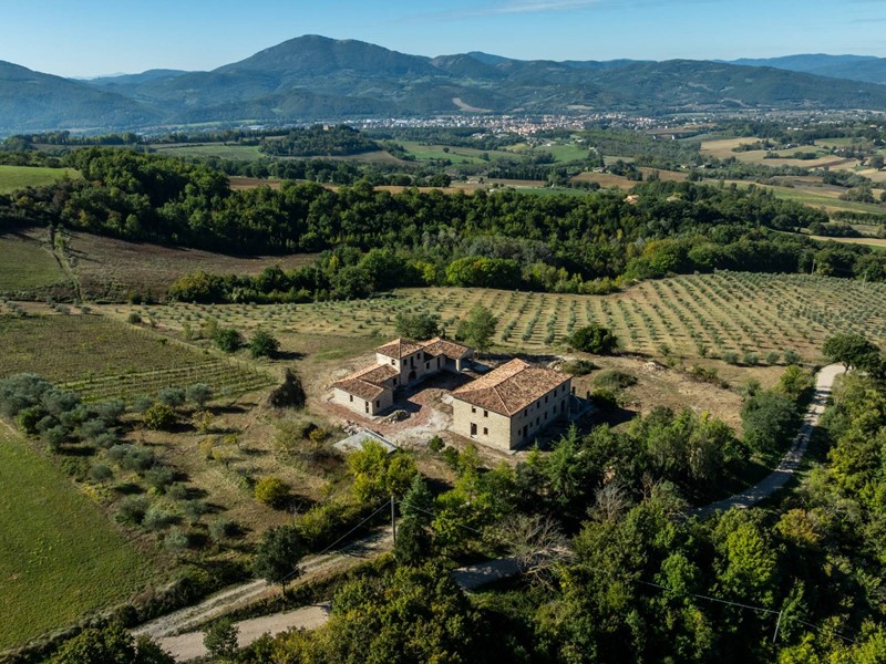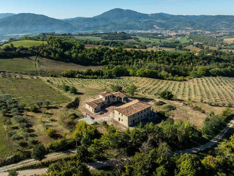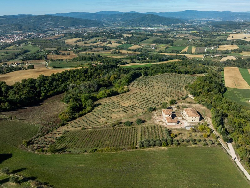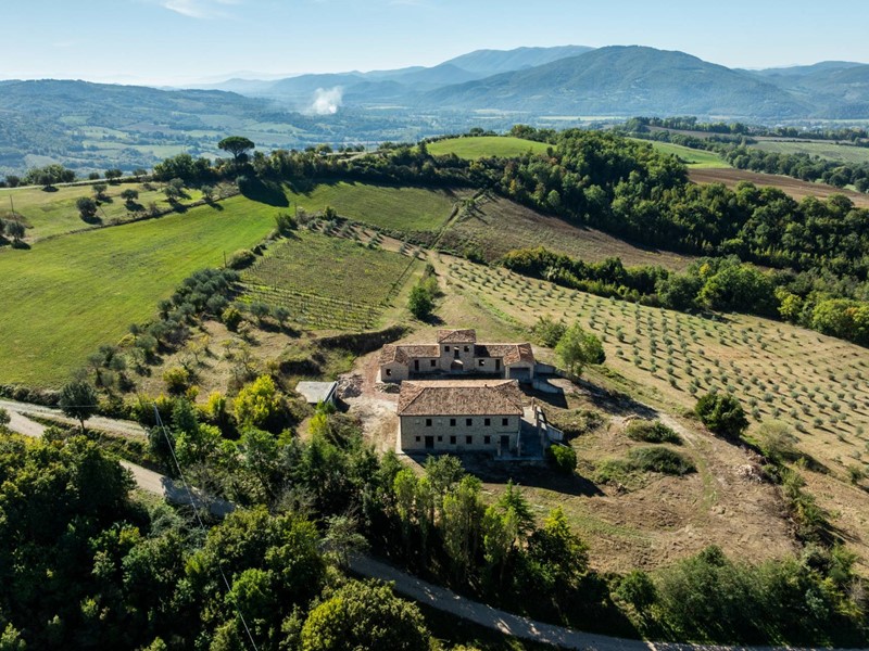 Situata in posizione dominante e baciata da una vista mozzafiato sulle colline della Val Tiberina, questa straordinaria proprietà è composta da due casali in pietra immersi in circa 8 ettari di terreno, arricchiti da oltre 3000 ulivi e da un incantevole vigneto in piena produzione.