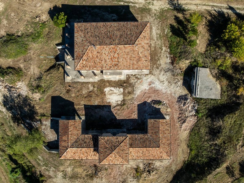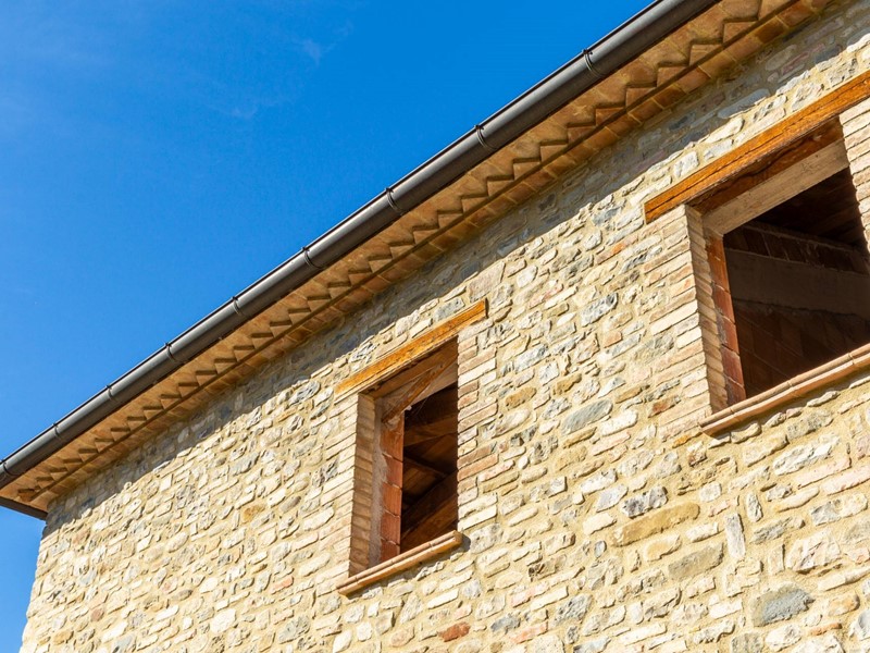 I due edifici, costruiti ex novo recuperando la volumetria di antiche strutture rurali, rappresentano una perfetta fusione tra tradizione e modernità. La solida struttura in cemento armato antisismico, il rivestimento in pietra locale e mattoni antichi, lefficiente sistema di isolamento termico e i soffitti alti con travi in castagno a vista conferiscono a questo complesso un fascino autentico e una qualità costruttiva rara sul mercato.