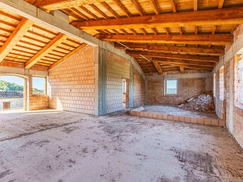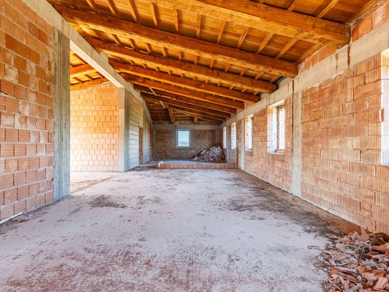 Il piano terra, di circa 250 mq è pensato per ospitare la zona giorno ed è già predisposto per la realizzazione di un portico o di una serra solare di circa 80 mq. Il primo piano, della stessa metratura, è stato progettato per accogliere cinque camere di generose dimensioni, ciascuna con bagno en-suite, ed è caratterizzato da un magnifico soffitto in legno di castagno che raggiunge unaltezza di oltre quattro metri e mezzo nel punto più alto.