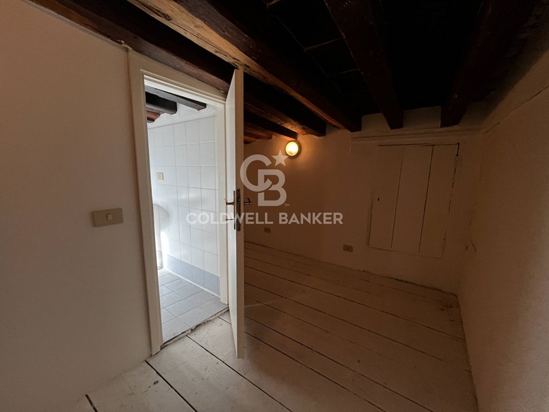 La prosegue al secondo piano che dispone di una stanza affrescata di circa 30 mq. con due grandi finestre vista canale.