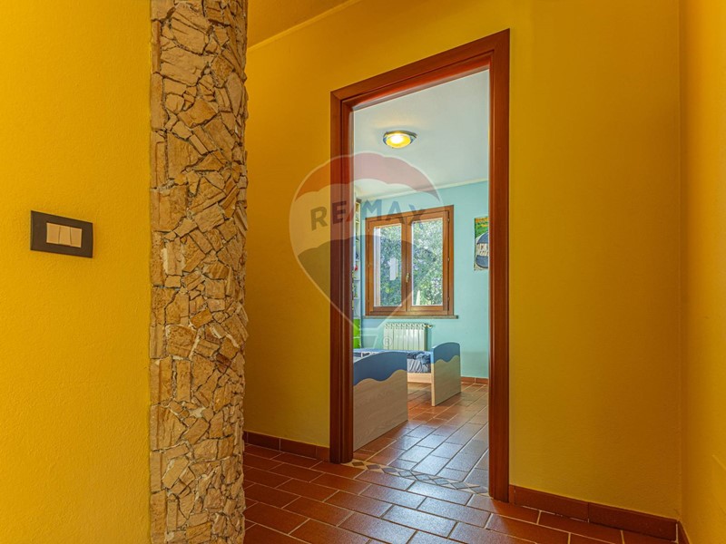 Attraverso un ampio porticato vivibile si accede alla zona giorno, dove troviamo un luminoso soggiorno con camino, un comodo accesso alla parte retrostante della casa, una cucina abitabile, un antibagno con bagno di servizio lavanderia e una camera studio che, alloccorrenza, può diventare una quarta camera da letto.