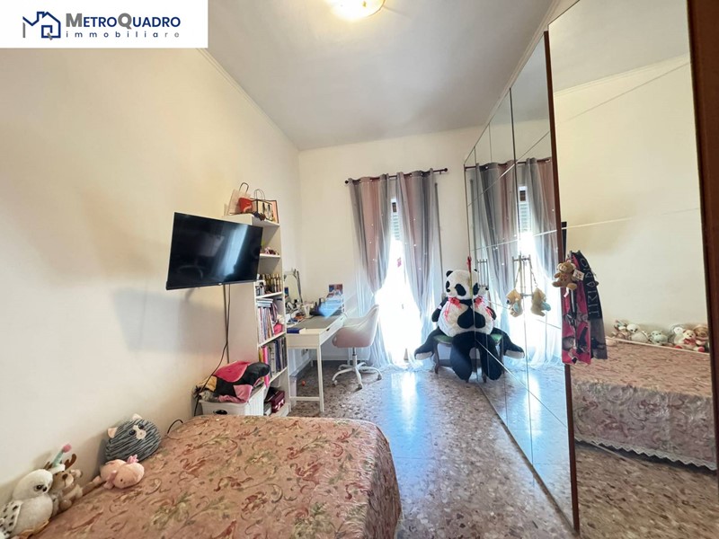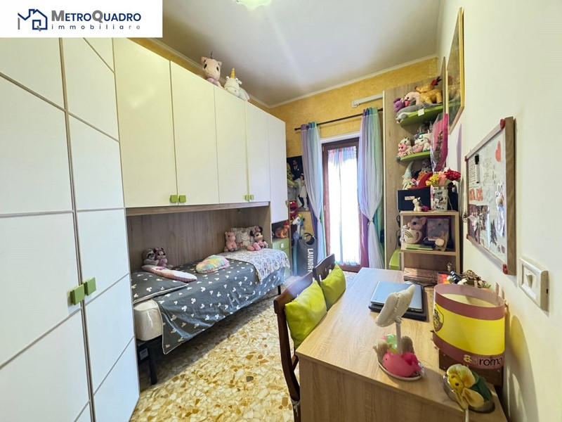 Con una superficie totale di 90 metri quadrati, l'appartamento è composto da un comodo ingresso con armadio a muro, soggiorno, cucina, due camere e cameretta e due bagni.