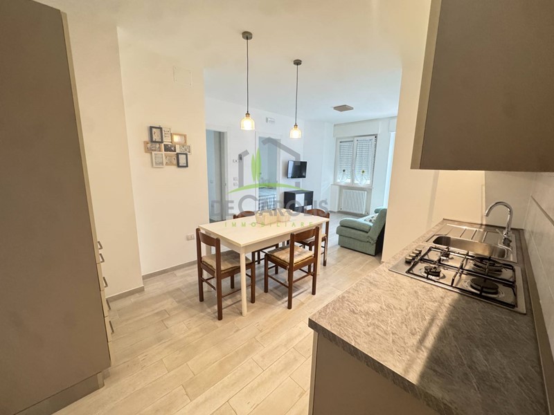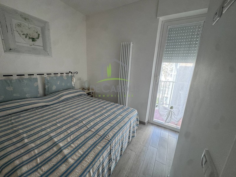 L'appartamento completamente ristrutturato e con tutti i comfort di ultima generazione è composto da ingresso, soggiorno con cucina a vista due camere, un bagno, balcone con vista mare laterale.