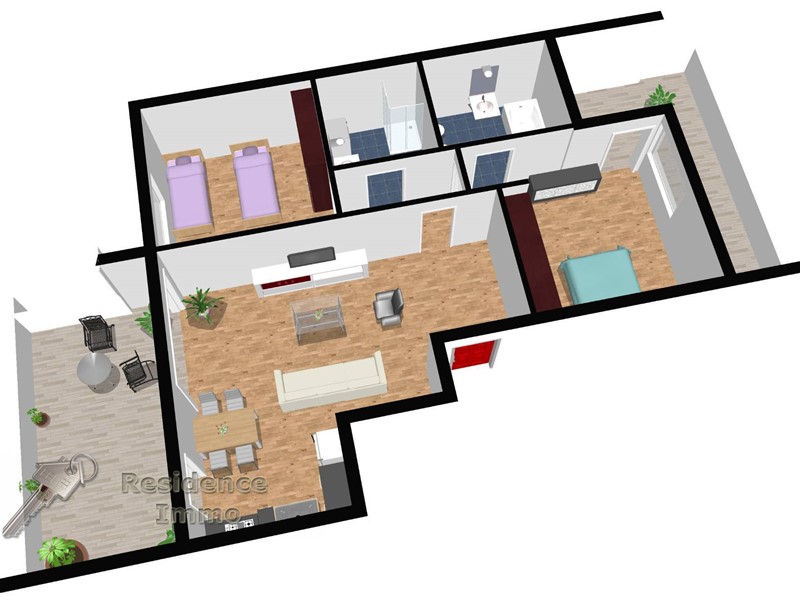 BOLZANO - Trilocale NUOVO con ampie terrazze in standard casa-clima "A" in posizione molto servita, in un contesto molto curato, destinato a guadagnare di valore con le persone che ne abitano nel tempo. La costruzione viene proposta in ottima qualità costruttiva secondo le regole casa-clima "A" per ottime prestazioni energetiche sia invernale che estive e benessere degli inquilini. Il complesso dispone di un parco interno/privato di 5.000mq che consente anche una bella distanza e visuale tra un'edificio e l'altro. I tagli e le finiture sono molto ben studiate e tra l'altro comprendono quanto segue: riscaldamento a pavimento, finestre insonorozzate con tapparelle elettriche, pavimenti in legno nelle stanze e ceramica in cucina e nei bagni, a SCELTA dell'acquirente, impianto tv e satellitare condominiale, videocitofono, acqua in giardino e/o sui terrazzi, porte di sicurezza esterne e per ogni appartamento, ascensore ecc. Ogni appartamento è dotato di cantina e sono disponibili (extra) box garage di varie taglie. Impianto di teleriscaldamento comune, con comando autonomo e conteggiatura differenziata a seconda del consumo. L'impianto elettico è basato su domotica TICINO. Ci occupiamo di Lei, ResidenceImmo è la Sua agenzia immobiliare. www.residenceimmo.it