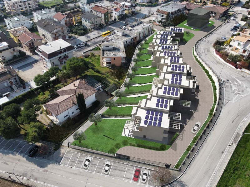 Villetta a schiera in classe energetica A4, antisismica, progettata con un design moderno, all'interno di un Centro Residenziale di 12 unità immobiliari, denominato "Gli Olmi" a Grottammare, realizzate dalla Ditta Ceccarelli Costruzioni srl.