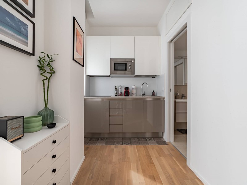 L' immobile ha una luminosità importante con un' esposizione a sud - est. Il monolocale così composto presenta, ampio soggiorno con cucina ad induzione a vista, arredamento fatto su misura per ottimizzare gli spazzi.