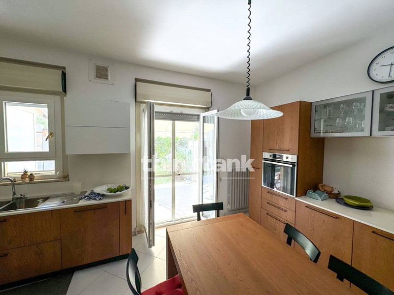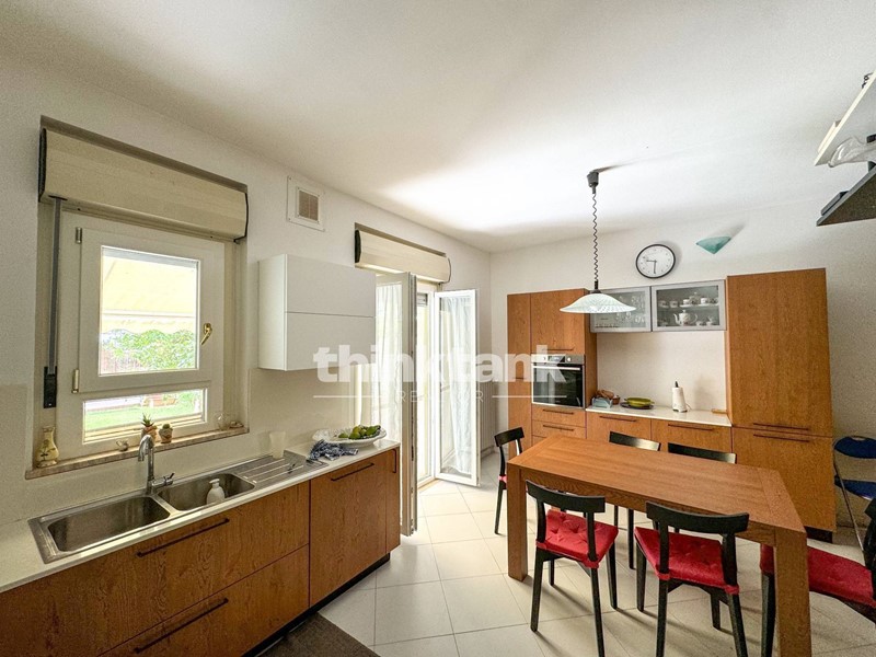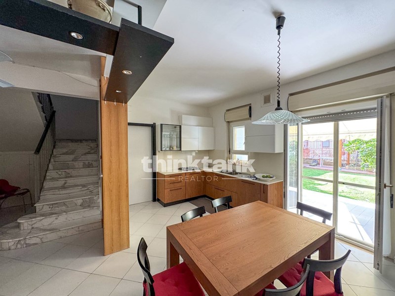 Al piano terra si sviluppa la zona giorno, composta da un ingresso su un ampio soggiorno, una cucina abitabile con affaccio diretto su un giardino privato, arredato con gazebo e dotato di vano tecnico per gli impianti. Sempre al piano terra troviamo un bagno con antibagno, un garage di circa 17 mq collegato allabitazione e una comoda verandina con piccolo angolo verde sul lato dellingresso.