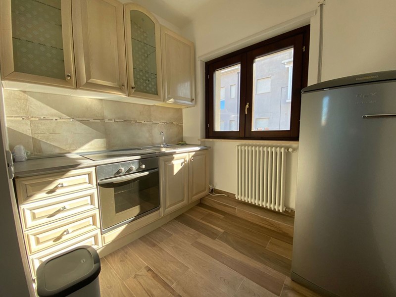 L'appartamento, pur essendo un unico ambiente, è stato tramezzato per creare una separazione funzionale tra zona soggiorno, angolo cottura e bagno finestrato. La disposizione interna è semplice ma razionale, ideale per chi cerca una soluzione compatta e centrale.