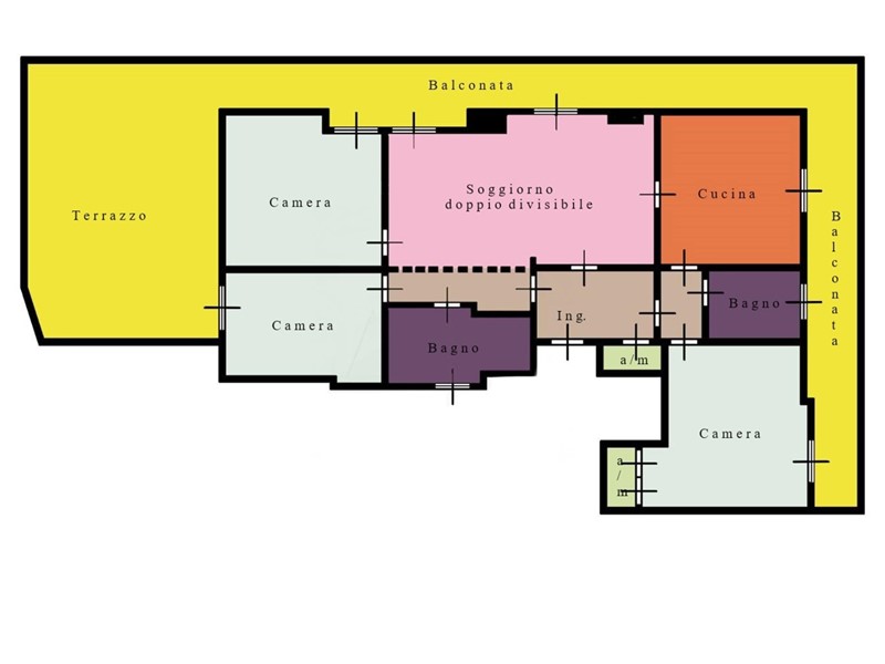 L'immobile vanta una ristrutturazione di alta qualità, con finiture moderne e di design. Il soggiorno doppio divisibile, le 3 camere da letto offrono ampi spazi e luminosità, mentre il balcone perimetrale e il terrazzo regalano momenti di relax all'aria aperta con vista panoramica sulla città in quanto l'affaccio è completamente esterno ed aperto e in quadrupla esposizione.