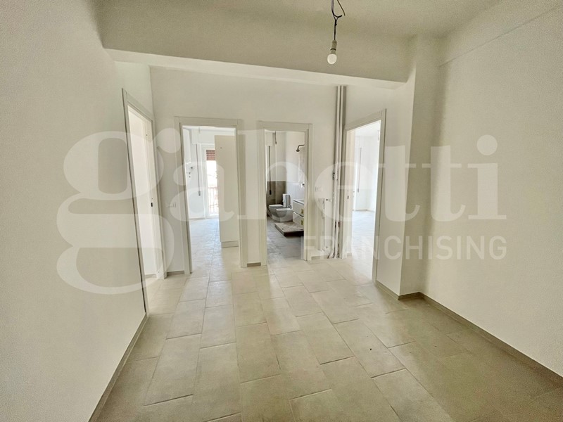 accedendo si è subito accolti in un ampio e funzionale ingresso; la zona giorno è completata da uno spazioso soggiorno che può ospitare al suo interno sia la zona salotto che la zona pranzo e dal quale si accede all'ampio balcone da cui è possibile godere di una suggestiva vista di splendidi tramoti sul Gazometro.