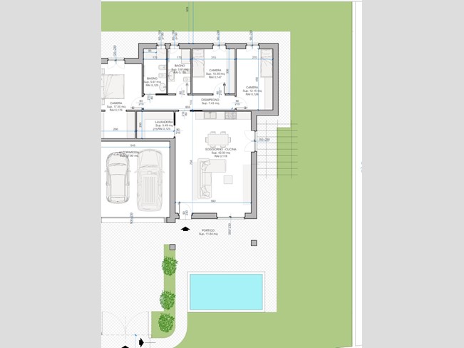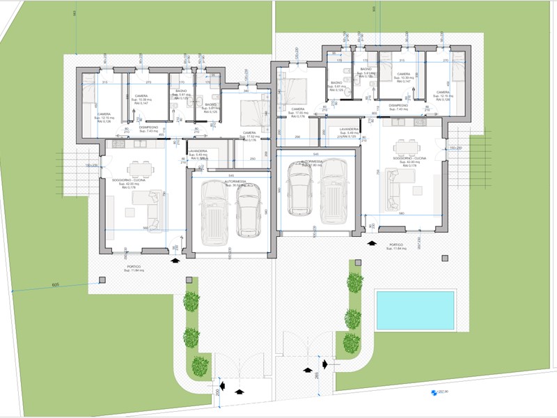 Box doppio direttamente collegato alla villa al piano terra e giardino sui tre lati di 350 mq circa.