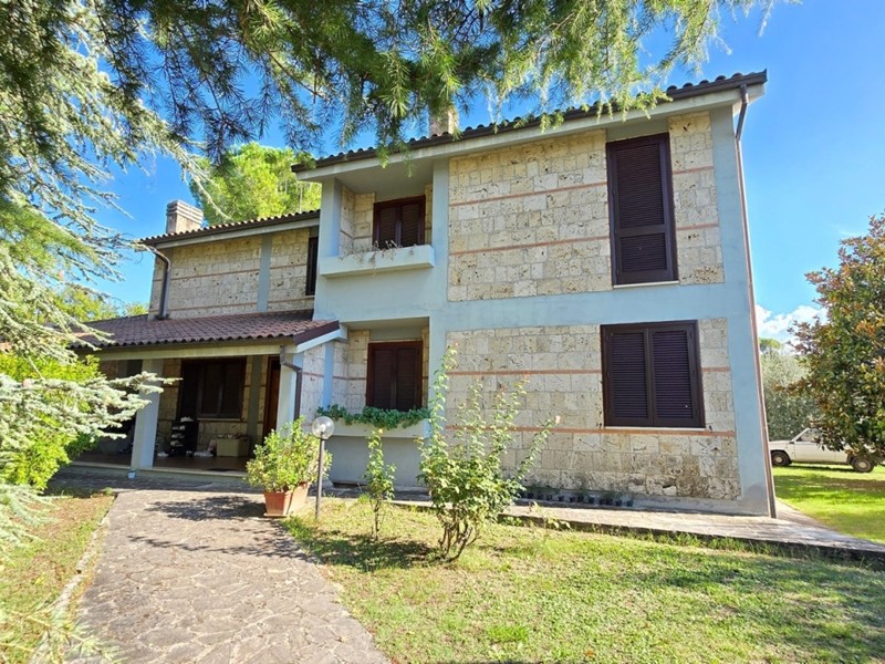 La casa gode di due ampi portici, un ampio giardino (possibilità di fare una piscina) con alberi di alto fusto e ulivi ed un pozzo con varie fontanelle sparse nel giardino.