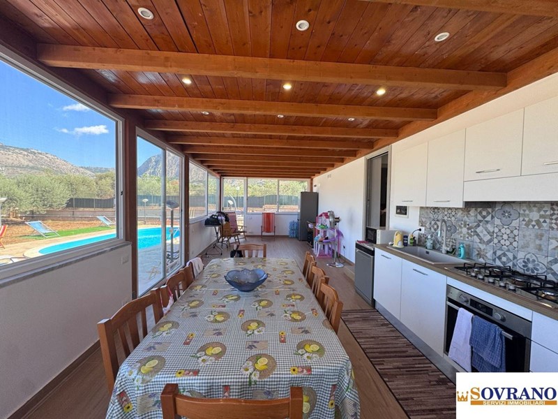 Zona: Carini / Magellano\n\nNel Comune di Carini, in una tranquilla e riservata zona residenziale alle spalle del Lidl, tra le aree di Jhonnie Walker e Magellano, proponiamo in vendita una splendida villa unifamiliare completamente ristrutturata, immersa in un contesto signorile caratterizzato dalla presenza di numerose ville. La proprietà si estende su un lotto di circa 2.000 mq, offrendo ampi spazi sia interni che esterni, pensati per garantire il massimo del comfort e della qualità della vita.\nLa villa, con una superficie interna di circa 120 mq, si apre su un elegante portico che introduce a un'abitazione accogliente e funzionale. Gli ambienti sono ben distribuiti e comprendono quattro camere da letto, due bagni con doccia e una spaziosa cucina abitabile collocata in veranda.\nIl vero punto di forza dell'immobile è lo spazio esterno, curato in ogni dettaglio: una grande veranda di 60 mq attrezzata con forno per pizza e barbecue, ideale per cene all'aperto, due docce esterne, un ulteriore bagno, una splendida piscina con locale tecnico e un ampio giardino che circonda la villa, regalando privacy e relax in un'atmosfera unica.\nLa proprietà è dotata di infissi in vetrocamera, impianto di climatizzazione, due caldaie, ingressi carrabile e pedonale, oltre a comodi posti auto scoperti. Un'abitazione che coniuga perfettamente eleganza, funzionalità e vivibilità, ideale per chi desidera vivere a pochi minuti dalla città, senza rinunciare alla tranquillità e agli spazi di una residenza indipendente.\n\nL'immobile è visionabile tutti i giorni previo appuntamento telefonico.\nPer maggiori informazioni contattare Agenzia Sovrano Immobiliare ai numeri Tel. 0916813749 / Cell. 3292650184\nemail: info@sovranoimmobiliare.it\nHai bisogno di vendere e/o concedere in locazione il tuo immobile?\nRichiedi subito una consulenza GRATUITA immobiliare con il nostro esperto capace di valutare la tua casa e stimare il giusto prezzo di mercato. Contattaci Tel. 0916813749 / Cell. 3292650184 - Maggiori Dettagli: Climatizzato, Cucina Abitabile