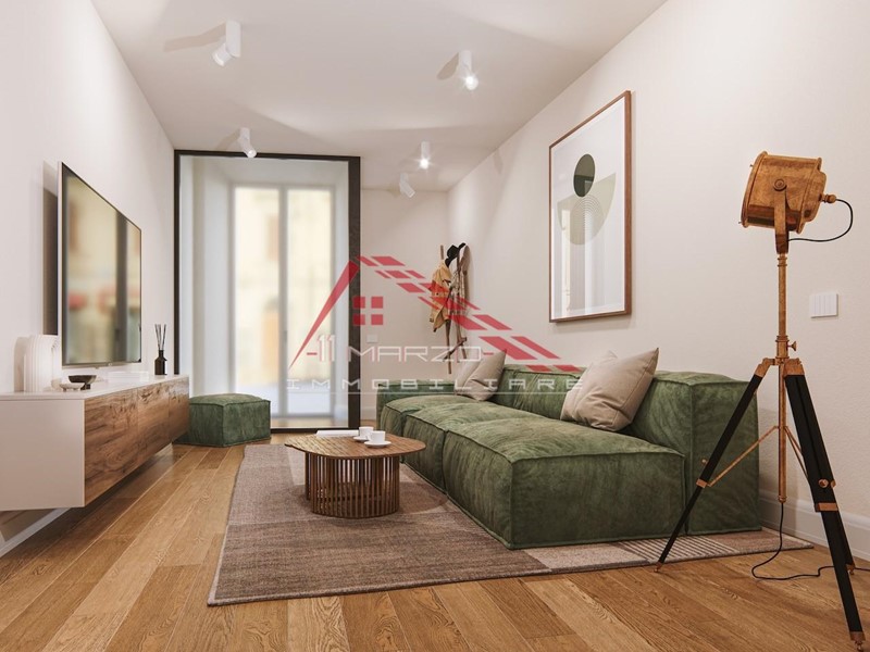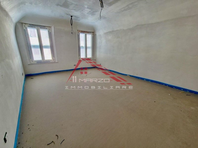Appartamento piano superiore: posto su due livelli (1° e 2° piano), di complessivi 121 mq, così composto: al piano terra da ingresso e ripostiglio nel sottoscala (ideale per ricovero bici); al 1° piano, con accesso tramite scala interna privata, da disimpegno, soggiorno con angolo cottura di circa 30 mq molto luminoso, ripostiglio/lavanderia/locale tecnico e bagno; al 2° ed ultimo piano, con accesso tramite scala interna privata, da disimpegno, 2 camere e bagno.