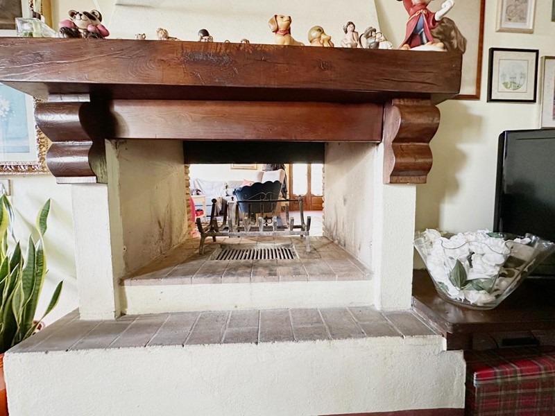 Al piano terra, l’ingresso, ampio soggiorno con un elegante camino bifacciale che lo separa armoniosamente dalla sala da pranzo, cucina abitabile, dotata di un caratteristico forno a legna, uno studio/dispensa e un bagno.