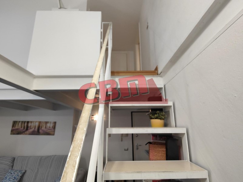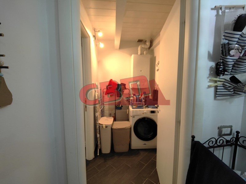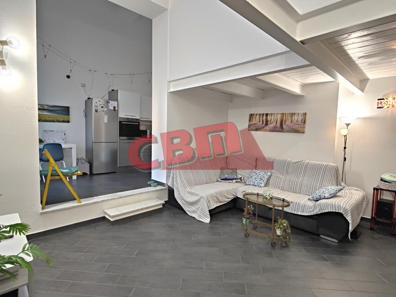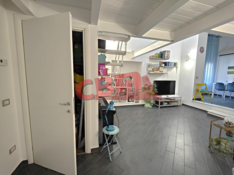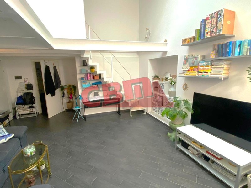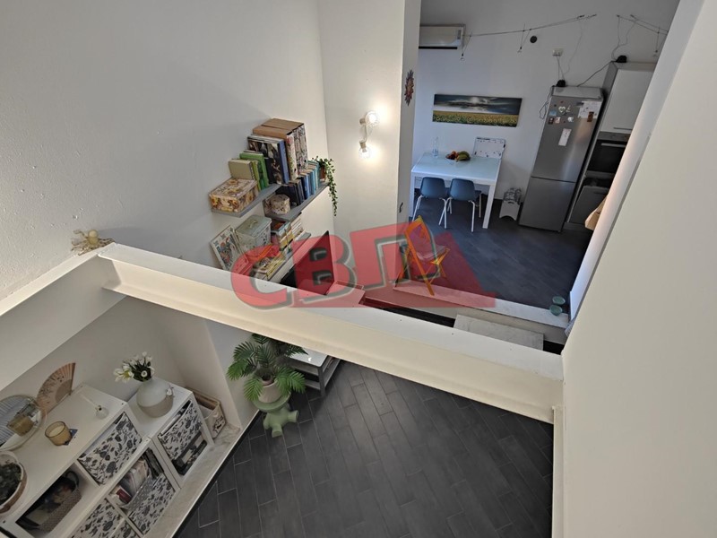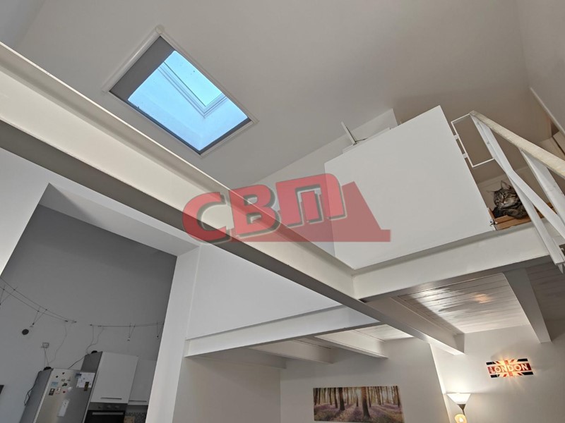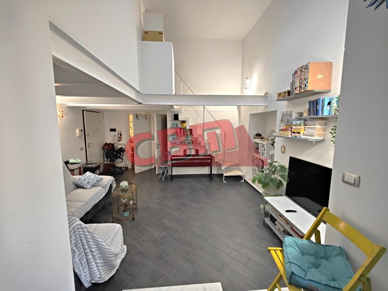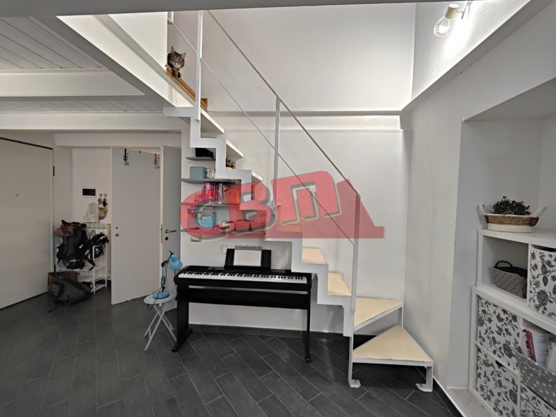 L'abitazione, all'ultimo piano con ascensore, è disposta su due livelli; punta soprattutto sulla zona giorno, in cui si vive la maggior parte della nostra giornata, con un grande open space di notevole altezza molto luminoso che culmina con una bella cucina arredata su misura a vista, nello stesso piano è collocato il bagno, la pratica zona lavanderia ed un ampio ripostiglio.
