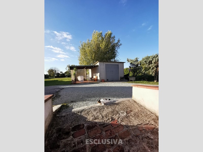 Nella prima campagna di Fucecchio, in zona comoda e molto tranquilla si vende l’intero piano primo di villetta bifamiliare molto ben tenuta con ampio spazio circostante a giardino e per accesso carrabile oltre a mille metri di terreno a continuazione. Si accede all’abitazione da un bel portico rialzato e da scale comode e spaziose che conducono all’ingresso, da cui si accede al tinello con cucinotto e ripostiglio oltre che balcone ampio con affaccio tergale, soggiorno spazioso collegato allo studio con accesso ad un grazioso terrazzino abitabile, il corridoio poi conduce nella zona notte dove intorno al disimpegno si aprono tre belle camere di cui due matrimoniali ampie ed una doppia oltre al bagno. L’intero immobile ha finiture dell’epoca di costruzione ma è molto ben tenuto e presenta infissi in legno con doppio vetro, inoltre gli impianti sono tutti autonomi e la caldaia e nuova. Completa la proprietà la soffitta praticabile, con accesso da continuazione delle scale e una taverna/cantina al piano seminterrato, anch’essa collegata dalle scale, di dimensioni totali pari a circa 66mq, inoltre sull’esterno vi è un garage di 29mq e 4 capanni per una superficie totale di 45mq. Immobile solido e spazioso con il grande pregio di una ottima posizione, adatto a chi cerca spazi ampi dentro e fuori casa e una collocazione con il verde a portata di mano.