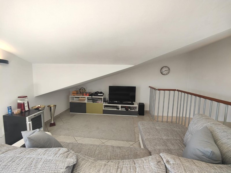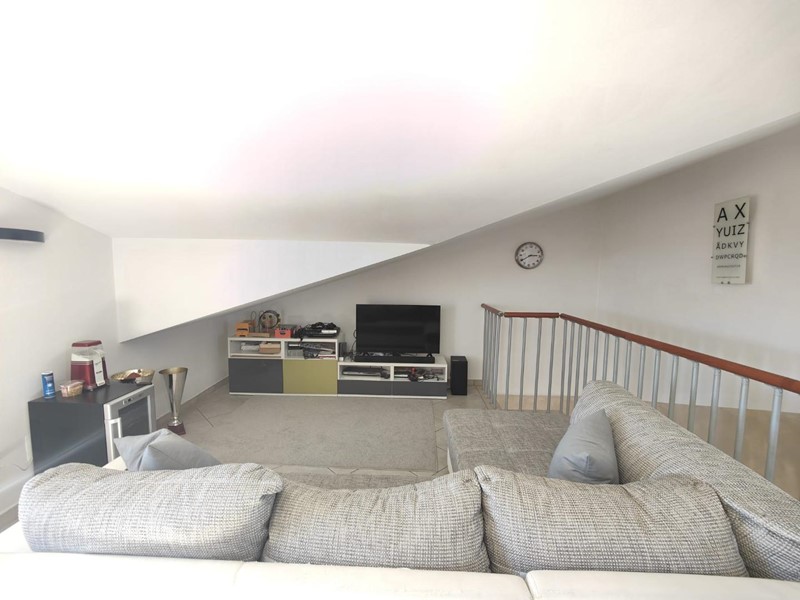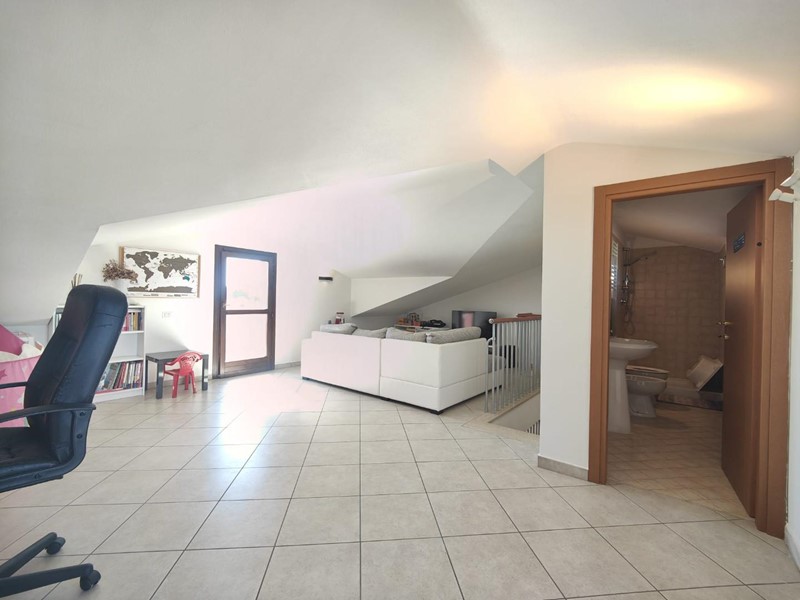 Dal soggiorno, una comoda scala interna conduce alla grande mansarda, ideale come studio, area relax o ulteriore zona living, completa di bagno finestrato con doccia e due terrazze.