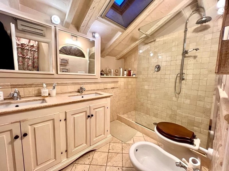 Al piano terra, si trova un ampio e luminoso open space che include l’area living, la cucina e la zona pranzo. Sempre al piano terra è presente uno studio. Al primo piano si trova una spaziosa camera da letto, attualmente utilizzata come sala TV con accesso diretto alla terrazza, e un bagno con vasca. Il piano sottotetto ospita una seconda camera da letto e un bagno con doccia. Entrambe le camere sono climatizzate. Gli spazi esterni al piano terra, pur non essendo ampi, sono molto piacevoli e godibili. La recente ristrutturazione ha interessato tutta la proprietà, che è stata curata nei minimi dettagli, rendendola perfetta sia come abitazione principale che come casa per le vacanze. A pochi passi dalla casa, è disponibile un parcheggio pubblico, mentre all’interno della proprietà è possibile parcheggiare bici e moto, grazie al cancello automatico.