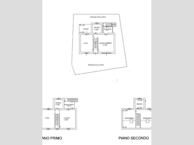 piano primo: camera matrimoniale, bagno finestrato con doccia, cucina/soggiorno con terrazza coperta e scala esterna di accesso.