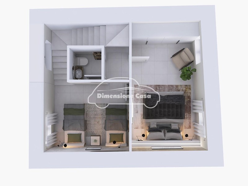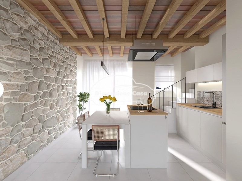 Al piano terra abbiamo ingresso nel luminoso soggiorno con cucina "open space" a vista e con penisola, perfetta per un ambiente conviviale e accogliente, bagno moderno e raffinato con doccia con cromoterapia integrata e un comodo ripostiglio nel sottoscala. Salendo al piano primo troviamo una elegante camera matrimoniale in stile moderno e contemporaneo, una camera doppia, perfetta per ospitare due letti, arricchita da uno splendido soppalco personale, perfetto per creare uno studio o una grande cabina armadio di design, un piccolo e grazioso servizio igienico dedicato alla zona notte. Il tutto è impreziosito da un tetto in legno lamellare contemporaneo, che dona un tocco di calore e raffinatezza all’ambiente.