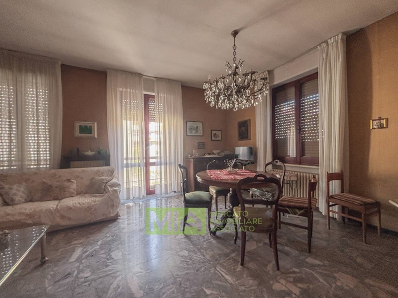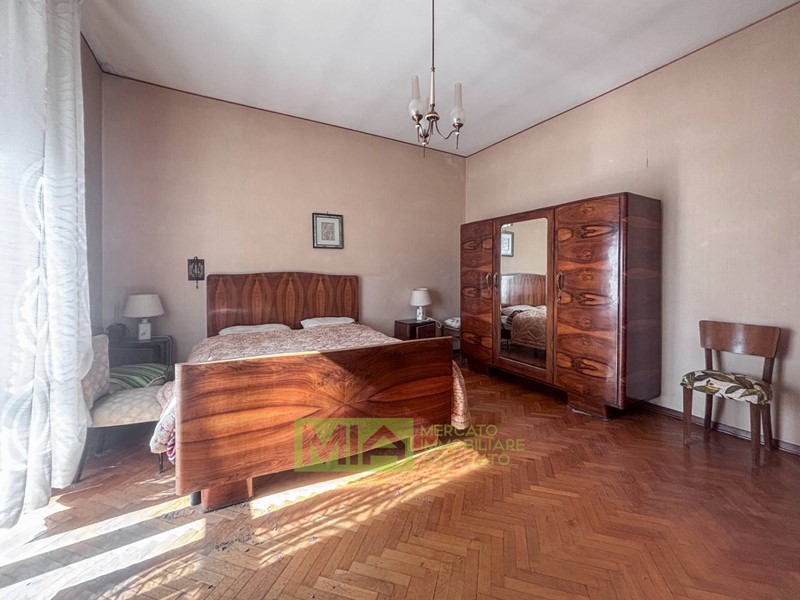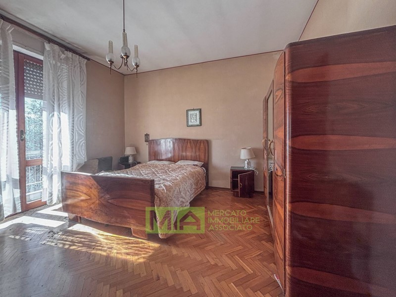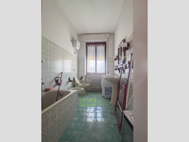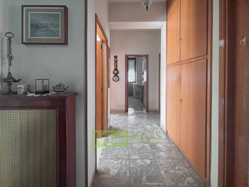 Labitazione occupa il primo piano e misura circa 110 mq catastali. Lingresso introduce a un soggiorno con affaccio esterno, cucina abitabile separata, disimpegni razionali bagno e tre camere. Materiali di periodo e infissi originari restituiscono carattere e autenticità, pronti a dialogare con un restyling mirato.
