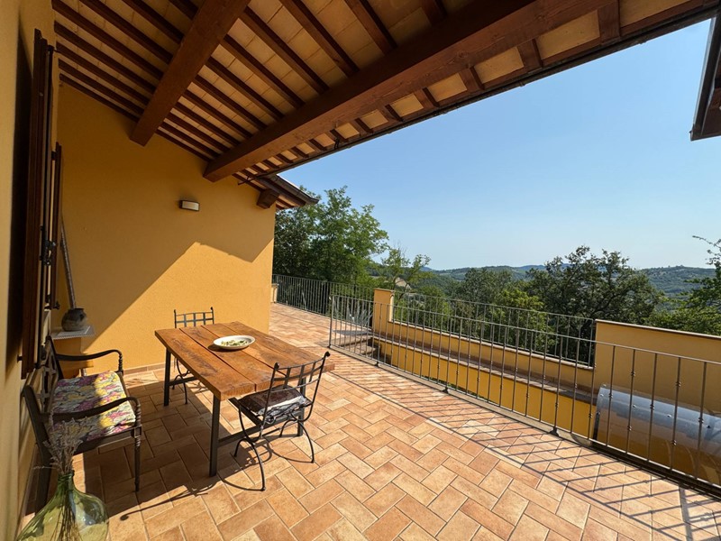 L'Immobiliare Unika propone in esclusiva di vendita nel Comune di Amandola (FM), in posizione dominante, splendido villino di circa 200 mq immerso in un raro contesto naturalistico. L'immobile da considerarsi pari al nuovo si dispone su due livelli con accessi indipendenti ai singoli piani circondato da ampi spazi esterni a servizio. Trattasi di una soluzione immobiliare tipica della zona dei Sibillini con portici e travi a vista in ogni ambiente. L'unità principale è disposta al piano primo e si compone di ingresso su porticato, soggiorno collegato ad una luminosa sala da pranzo con cucina a vista e accesso diretto al giardino esterno, disimpegno notte che comprende una camera padronale con bagno interno, seconda camera matrimoniale e bagno principale. Tutti gli ambienti sono serviti sia dalla corte esterna che da terrazze vivibili. Il piano terra, accessibile sia dall'interno che dall'esterno e si compone di rustico/taverna con cucina a vista e camino con affaccio diretto alla seconda corte esterna e all'atrio, stanza pluriuso con bagno interno e locali tecnici/lavanderia esterna. E' presente un garage di circa 20 mq posto al piano terra con annessa cantina. La proprietà si completa di una spettacolare corte esterna disposta su più livelli curata nei minimi dettagli con piante da frutto e in parte ornamentali e un terreno in aderenza di circa 35.500 mq adibito a bosco percorribile al suo interno con più accessi carrabili. Immobile impeccabile, completamente recintato, con possibilità di creare due ambienti abitativi separati, ideale anche per uso recettivo/turistico. Vera opportunità a due minuti dal Centro Storico di Amandola e dai Sibillini. Ulteriori informazioni e dettagli presso il nostro studio. Classe energetica "in fase di definizione". RIF. VV394. Immobiliare Unika 0734 300555 - 3271687900.