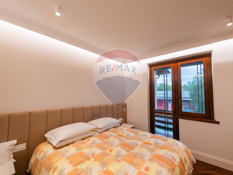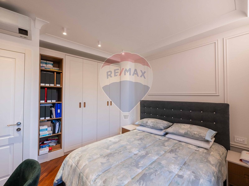 Attraverso la scala scenografica, impreziosita da faretti, ci colleghiamo al piano primo composto da camera matrimoniale con balcone coperto, cabina armadio e bagno finestrato con doccia walk-in matrimoniale, altre due camere matrimoniali con balcone ed affaccio sul giardino e secondo bagno al piano con ulteriore doccia matrimoniale.