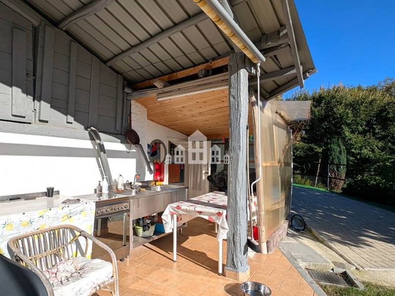 Internamente la casa verrebbe venduta vuota, ma resterebbe la stufa a legna, perfetta per creare unatmosfera calda e accogliente durante linverno. Allesterno invece troviamo un gazebo, un forno a legna, una tenda, un tavolo con panche e una piscina: elementi che rendono lo spazio allaperto ancora più piacevole e che possono essere acquistati separatamente se desiderato, per mantenere intatto quel fascino conviviale da casa di villeggiatura.