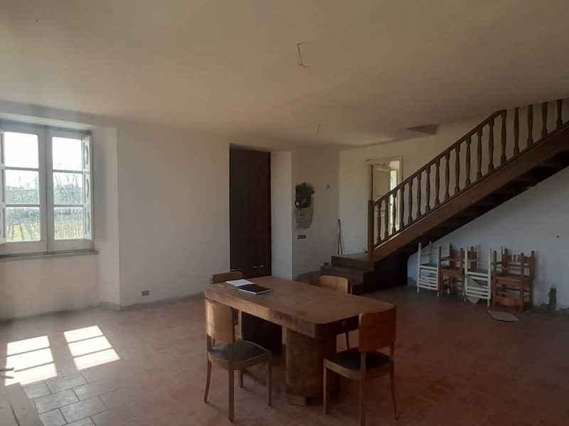 Nella parte al piano terra è presente un locale unico - in precedenza scuderia per rimessa degli animali - con belle volte e una rimessa agricola adiacente al casale stesso. Al piano superiore sul lato sinistro troviamo un ambiente unico con un bel camino d'epoca rimasto allo stato originario degli inizi del secolo, molto interessante per un recupero edeilizio. Nella parte sinistra troviamo una sopraelevazione e un appartamento con due piani.