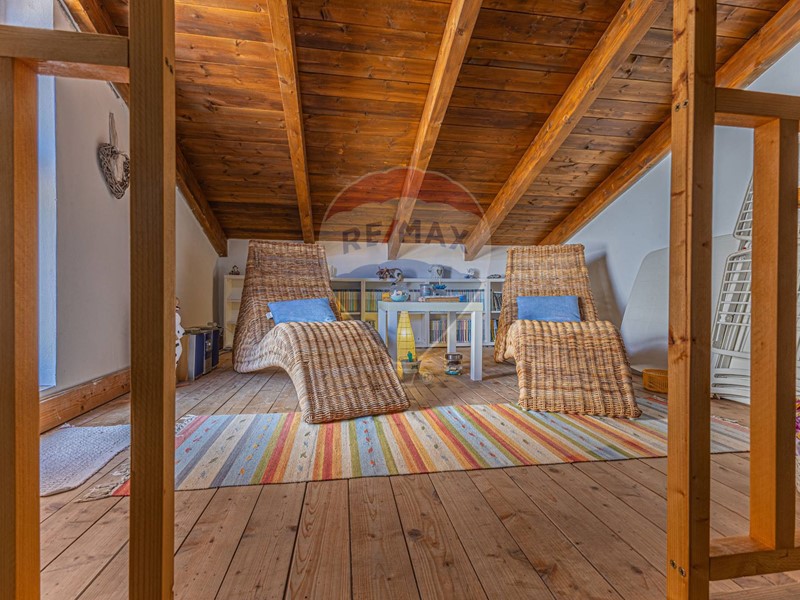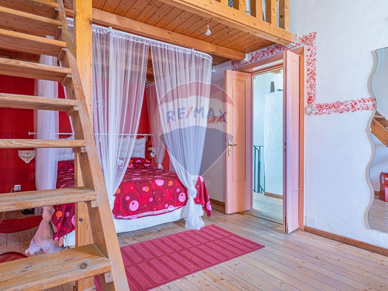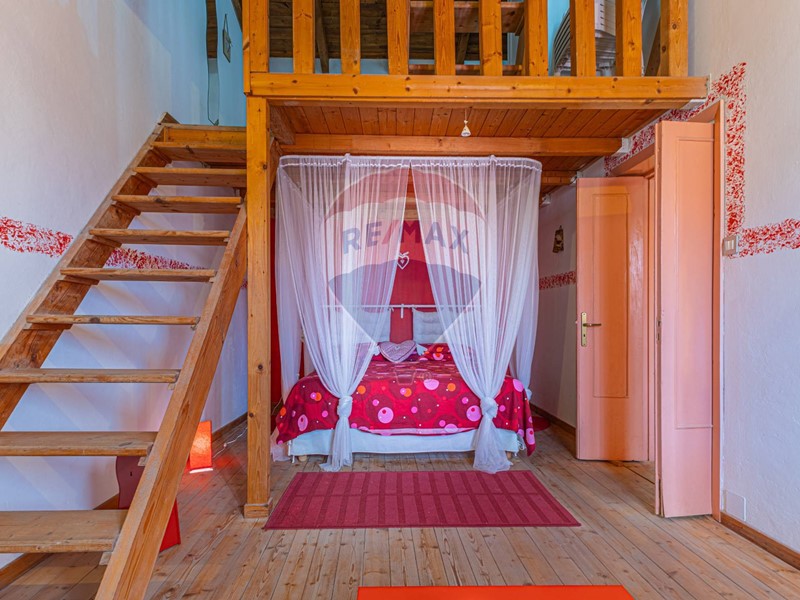 Il secondo piano include una camera studio (a seconda delle proprie esigenze) e una grande camera matrimoniale con accesso al terrazzo con vista sulla piazza e verso il Golfo dell'Asinara. Dalla stanza si accede a un ballatoio soppalcato, ideale per momenti di relax, che conduce a una terrazza a tasca di circa 14 mq, che affaccia sulla via retrostante e che guarda verso il mare.