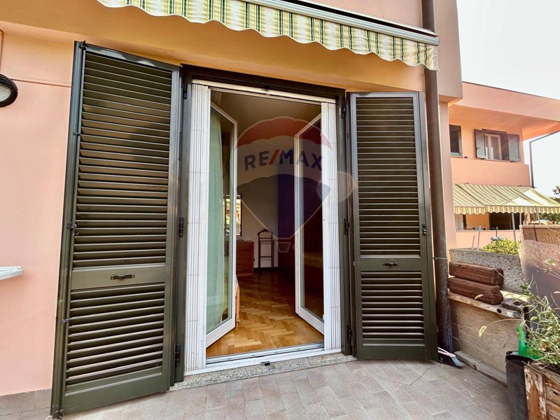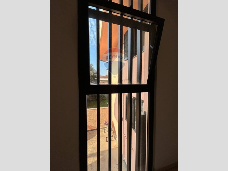 il soggiorno è dotato di portafinestra che si apre su un loggiato , mentre le due camere si affacciano su un'ampia e caratteristica balconata.