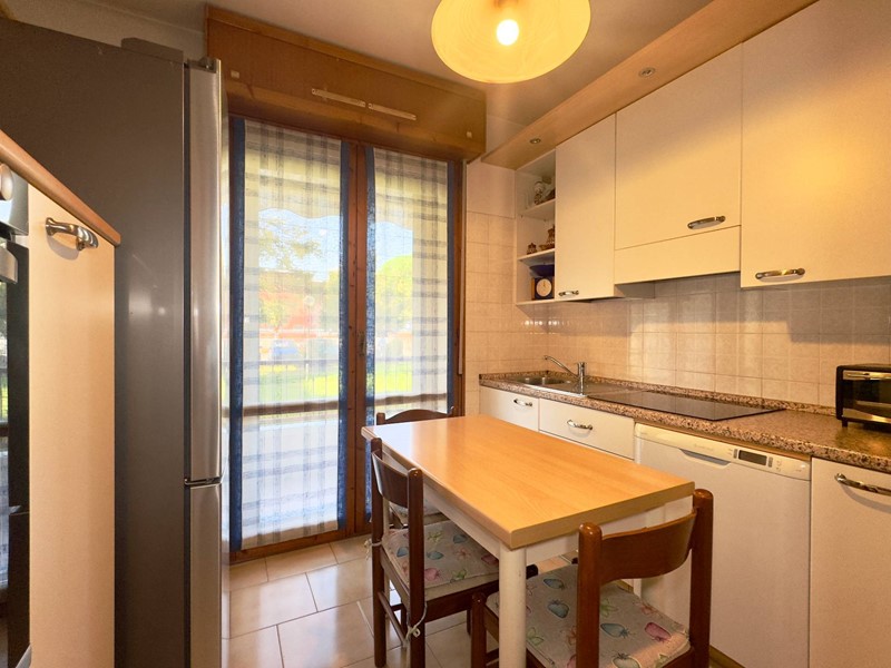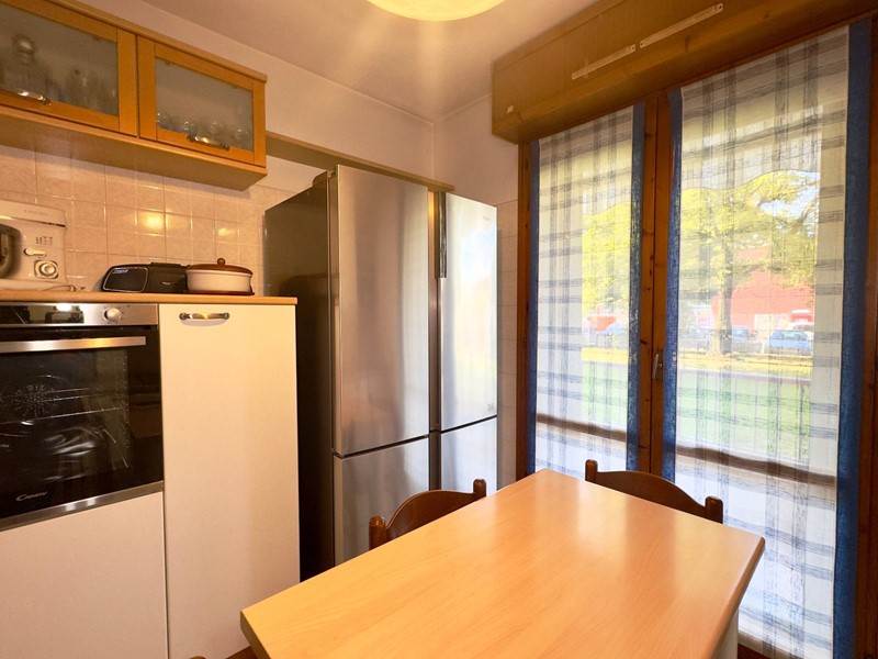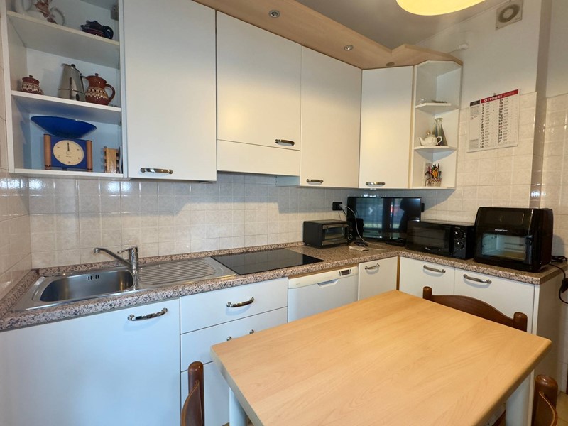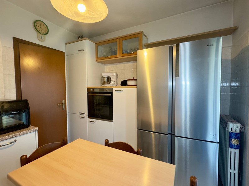 La cucina è abitabile, separata dal soggiorno e anchessa dotata di porta finestra con uscita sul terrazzo, offrendo così una continuità tra gli ambienti.