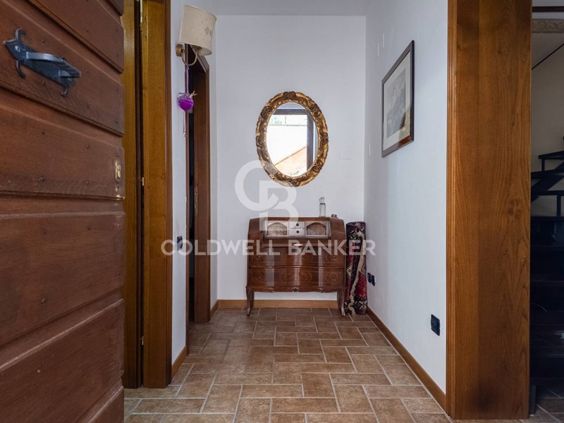 Gli infissi in legno con doppio vetro garantiscono eccellenti prestazioni termiche e acustiche, mentre i pavimenti in monocottura al piano terra lasciano spazio al parquet ai livelli superiori, creando unatmosfera calda e accogliente.