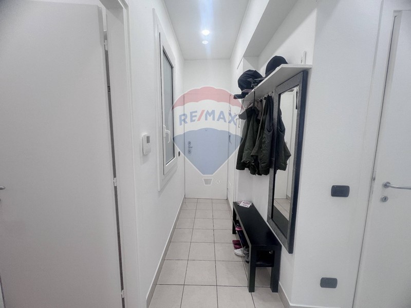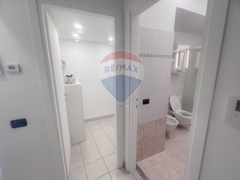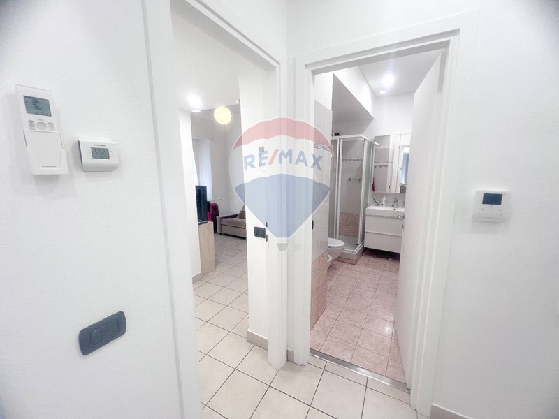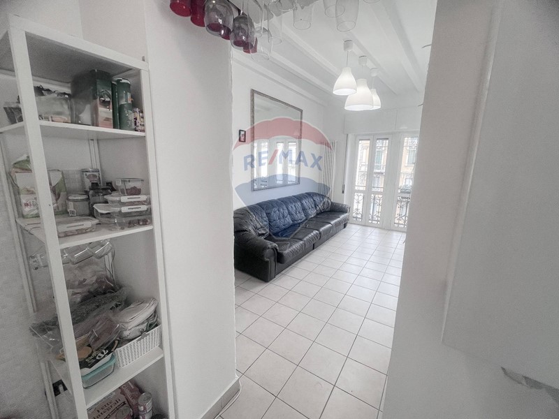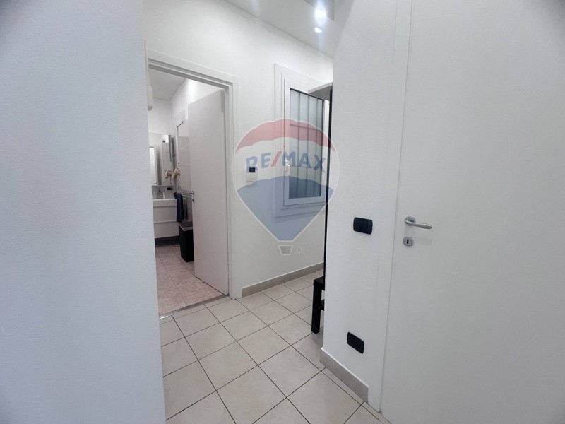 L'ingresso di questa abitazione è caratterizzato da un corridoio che conduce a tutte le camere dell'appartamento. La zona living e suddivisa tra uno spazio dedicato al relax ed un altro alla zona pranzo, questo spazio è illuminato da 4 porte finestre ad angolo, ognuna a 4 ante caratteristica che dona all'immobile luminosità e doppia esposizione. Risalendo attraverso il soggiorno accediamo alla cucina, completamente arredata e dotata di tutti gli elettrodomestici, questo è uno spazio compatto ma funzionale dettaglio che regala praticità nell'operatività di preparazione. Questo ambiente, anch'esso molto luminoso è dotato di una porta finestra con balconcino alla francese.